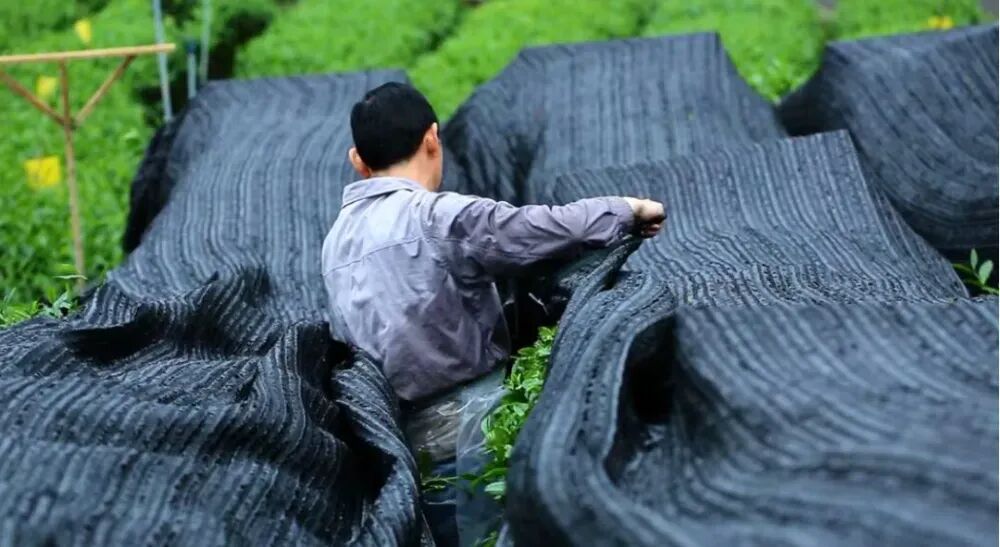 在采摘前约15天为茶树盖上遮阴网,能促使茶叶形成更多带来鲜甜味的茶氨酸,同时抑制苦涩的茶多酚,才是抹茶独特风味的来源。