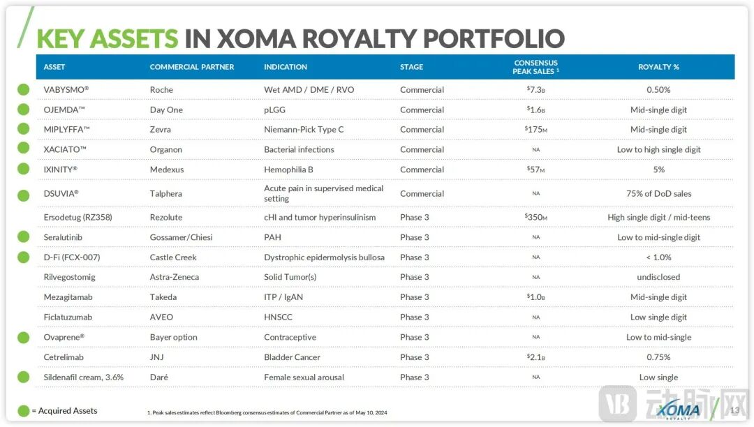 XOMA部分核心资产,图源企业官网
