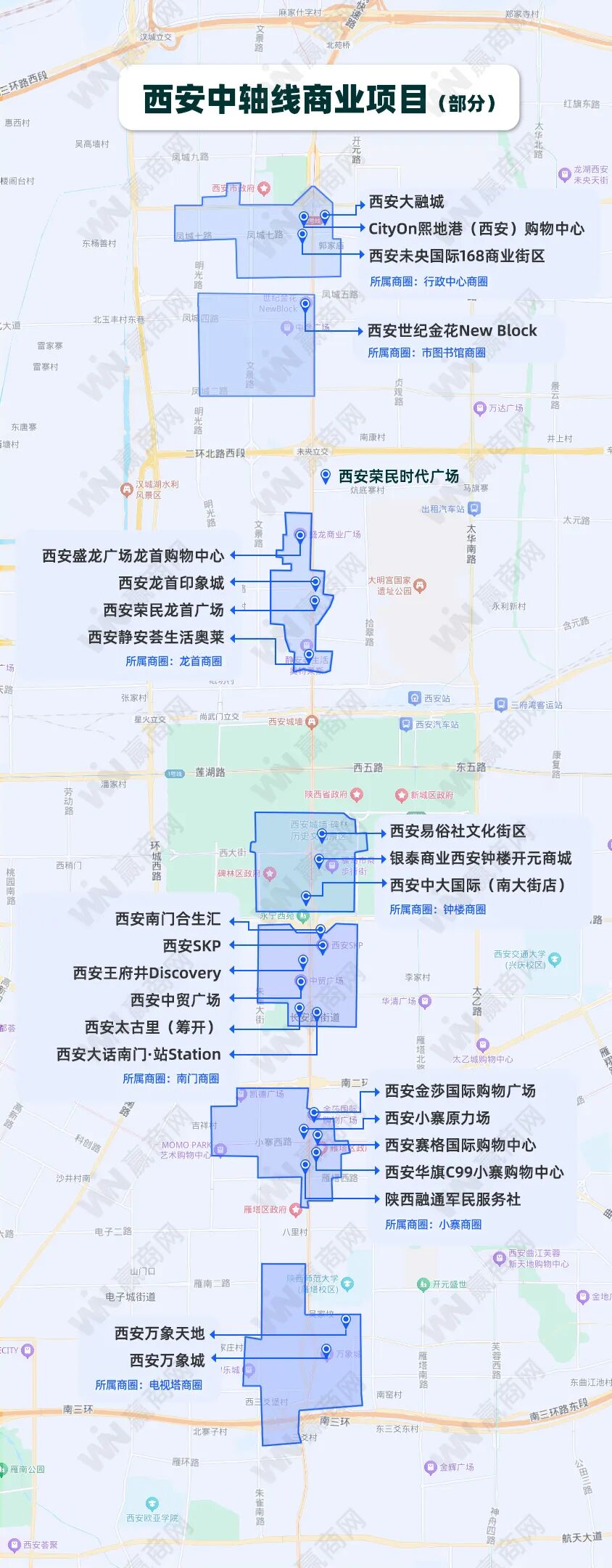 近些年,西安中轴线不断进阶提升,形成了多个商圈,集聚近400万㎡商业。