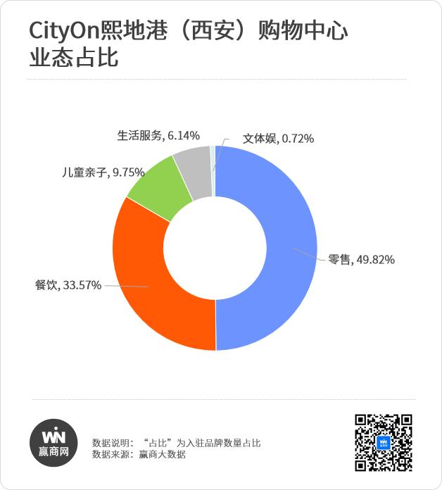 据赢商大数据,目前CityOn熙地港(西安)购物中心各业态品牌数量占比相对均衡,项目对行政中心板块常住人口渗透率高达27%、板块常住人口每月平均到访频次1.94,品牌组合与周边客群匹配度较高、消费者黏性强。