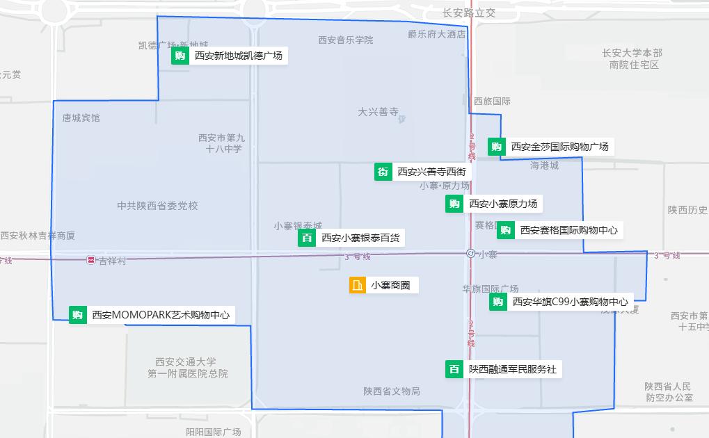 钟楼-南门商圈以南,以小寨商圈为主导。