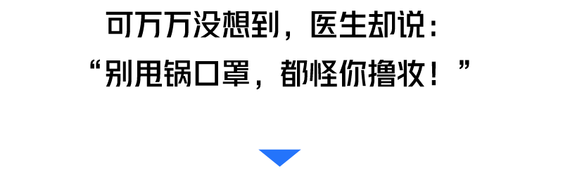 多换口罩 连续戴口罩时间,尽量不超过3小时,不给细菌滋生留机会 做好面部清洁 如果是敏感肌或痘痘肌,如果须长时间佩戴口罩,应每隔2个小时到通风、人流少的地方卸下口罩,让脸透透气02那些已经赢得“面具脸”的人可以用这种方式拯救自己!