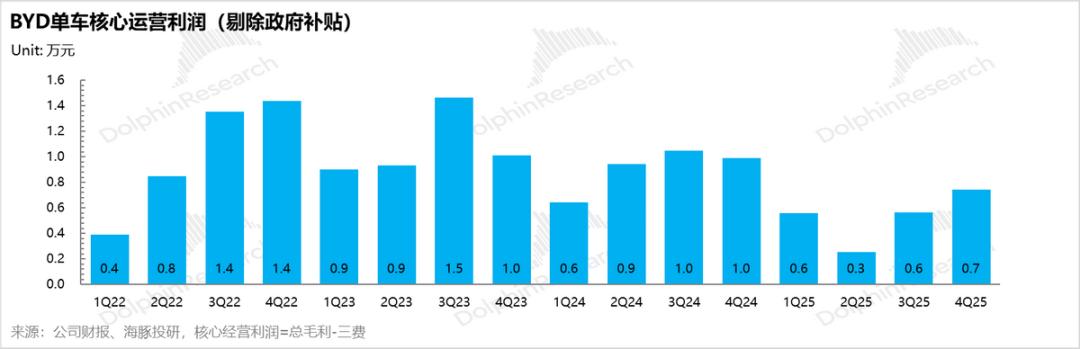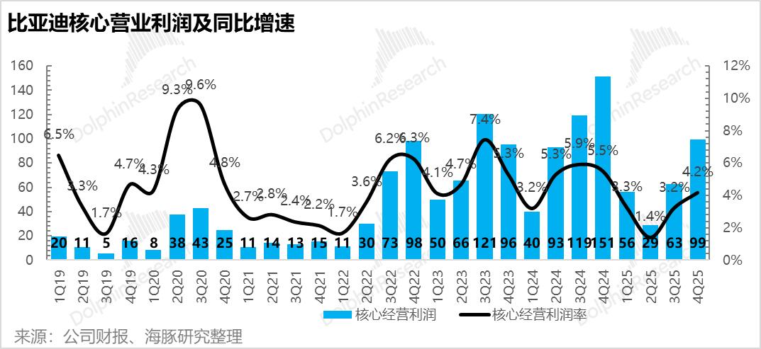 但去除这块业务来看,最核心的整车业务贡献净利润约 90.4亿元,虽低于市场预期的 96亿元,但得益于单车毛利的边际改善,整车业务净利率环比仍稳步回升了约 0.5 个百分点(至 5.0% 左右)。