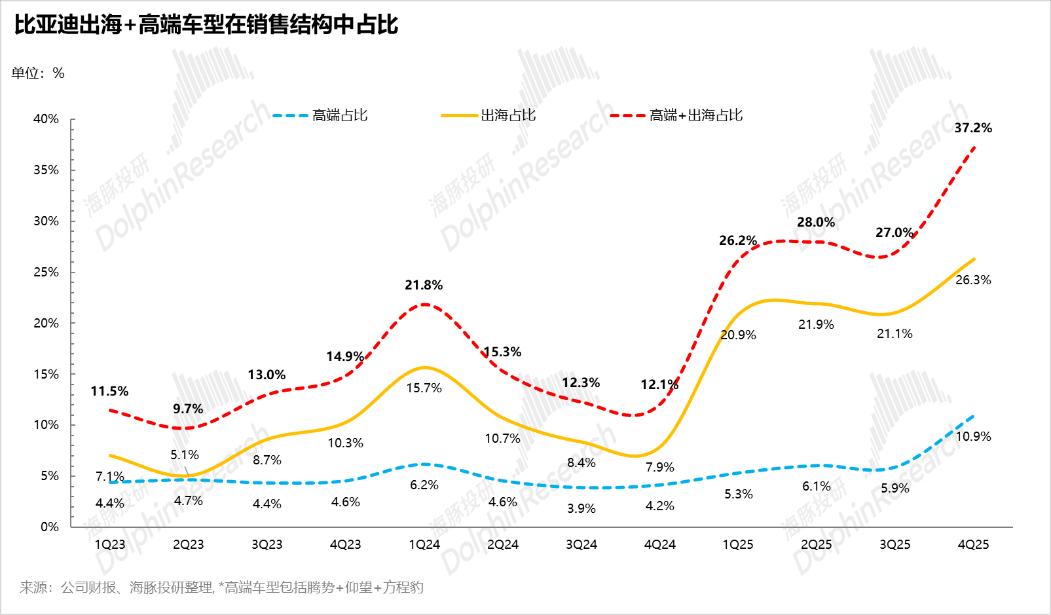 随着四季度海外销量占比快速提升至26.3%,这部分高价车型成为稳住整体ASP不至大幅下滑的 “压舱石”。