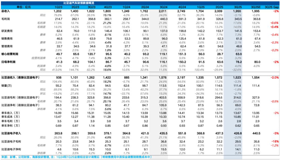 本季度,比亚迪实现整体归母净利润 93亿元,未能达市场此前 101亿元的一致预期。而比亚迪电子(BYDE)本季度净利润仅 3.8亿元(大幅低于市场预期的 12亿元),成为了拖累整体表观利润的最大因素。