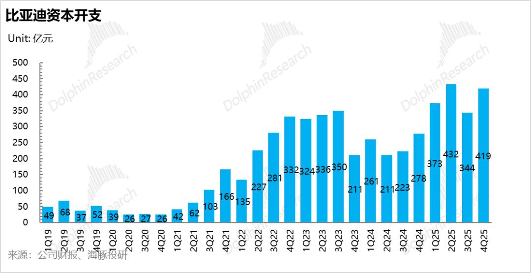 为打赢智能化下半场并支撑2026年密集的新品发布,比亚迪研发费用持续稳定投入,四季度比亚迪研发费用142亿,环比微增0.8亿元,但低于市场预期的155亿元, 研发重点也投入智驾算法自研、下一代三电技术及全新平台开发: