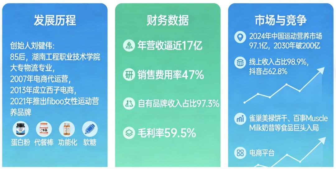 更重要的是,女性消费群体杀进来了。专门针对女性的产品越来越多,包装好看,吃起来像零食,价格还不贵。全球女性运动营养补充剂市场正以每年约5%的速度增长,中国市场的增速高于全球平均水平。西子健康的fiboo,就是吃到这波红利的典型代表。