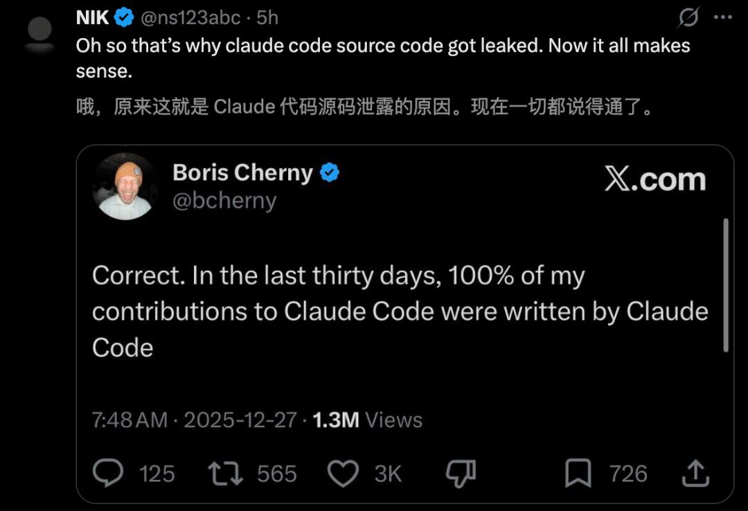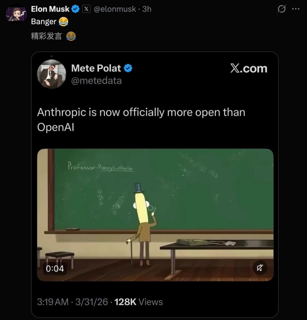 如今,全网都沉浸在Claude Code「开源」的狂欢之中。马斯克也在一旁看起了热闹。