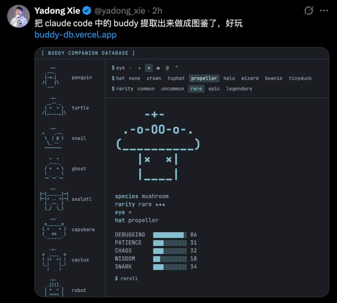 最值得玩味的是,代码中竟然内置了一个完整的电子宠物系统——「Buddy System」。