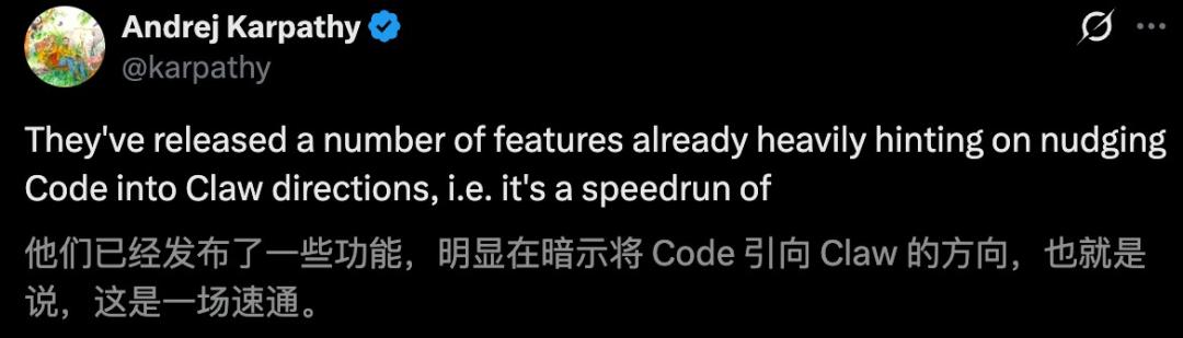 对此,Karpathy点评道,这些功能明显是将Claude Code「龙虾化」。