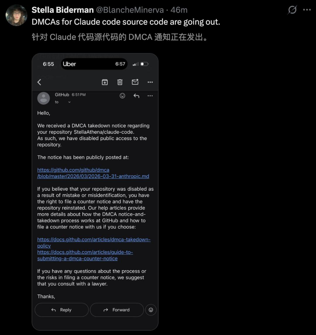 就在这个节骨眼上,Anthropic出手了:通过DMCA版权投诉,直接封杀了所有分享源码的链接。