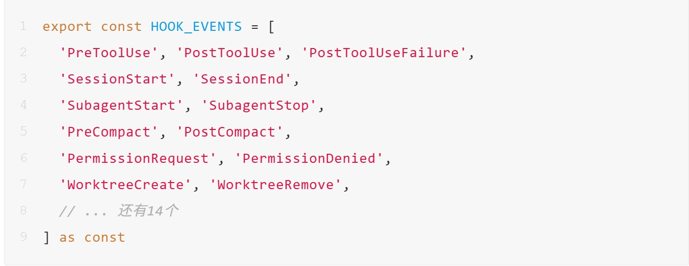 Claude Code 开放了 27 个事件节点,在 agent 运行的任何关键时刻,用户都可以插进来做点什么: