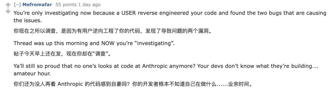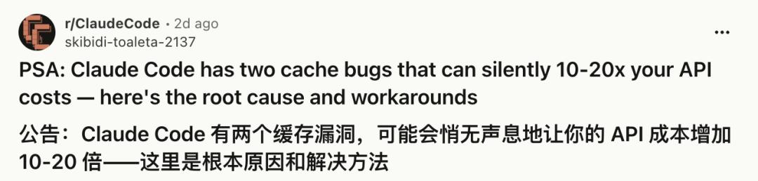 起因是两天前,有一位用户直接去逆向了Claude Code,结果发现两个独立bug,并po在了reddit上。