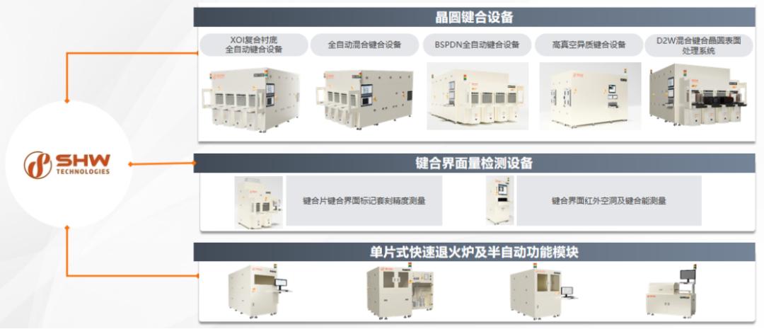针对这一市场机会,SHW已构建起五大核心装备体系,包括XOI复合衬底全自动键合设备、全自动混合键合设备、BSPDN全自动键合设备以及高真空异质键合设备、D2W混合键合晶圆表面处理系统,并同步开发键合界面检测与退火设备,支持4—12英寸晶圆,覆盖先进封装、衬底制造等多类应用场景。