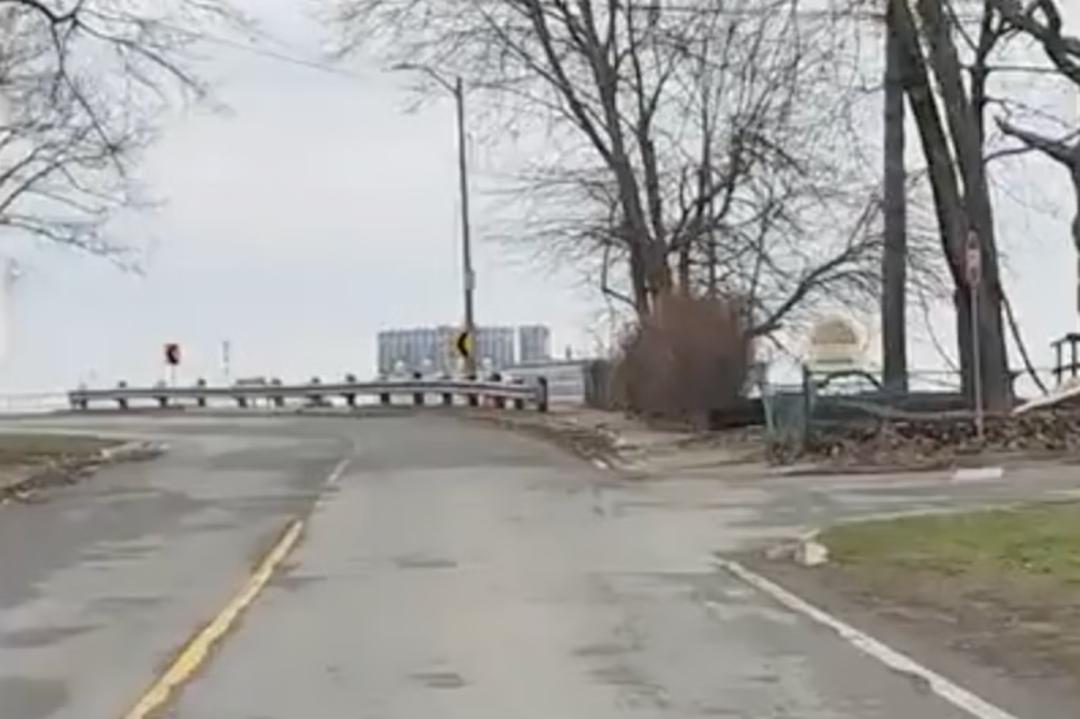当车辆沿着道路前进时,最初被地形和树木遮挡的伊利湖水面和清晰的地平线,会逐渐显露出来。