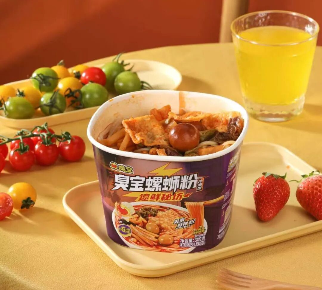 一方面实现从干粉到湿粉的突破:区别于普通速食的细粉,臭宝通过技术优化,在不使用任何添加剂的前提下,实现湿粉常温6 个月的保质期,还原螺蛳粉的正宗原料形态。