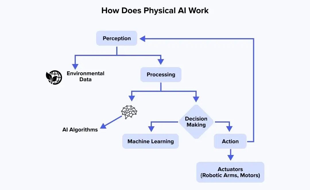 英伟达所定义的“物理AI”(Physical AI) 则提出了一种不同于传统学习驱动架构的技术方向,其核心是理解现实世界中的因果关系与物理规律,通过仿真、合成数据生成和端到端模型来训练AI在物理环境中的感知、推理与行动能力,在此基础上实现与现实世界的交互。这一变化并非单点技术升级,而是面向真实世界应用的系统级重构,尤其体现在对极端和长尾场景的处理能力上。