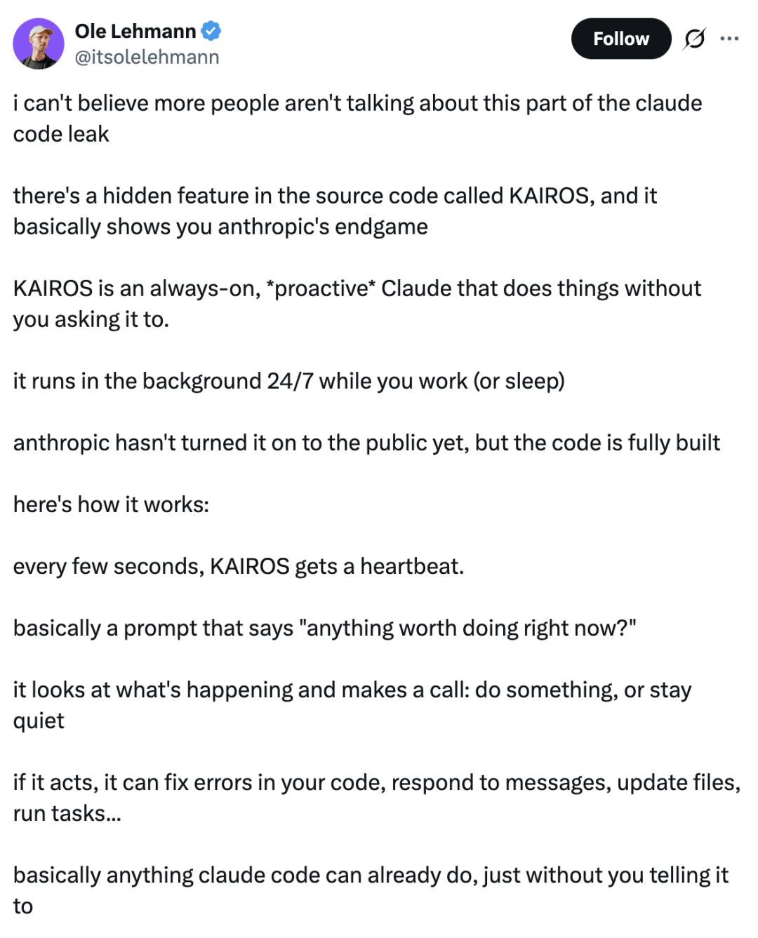 像KAIROS这种核弹级、Anthropic本该重金宣传的战略产品,居然因为一个乌龙就这么「随便」地发出来了。