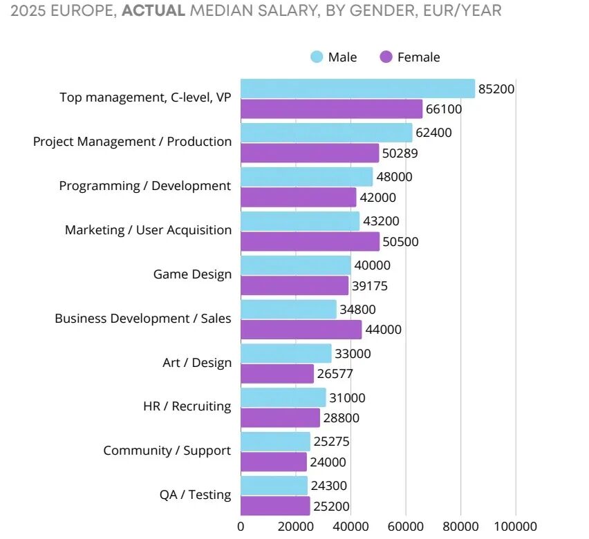 游戏行业不同岗位的性别薪酬差距仍然问题突出,女性在领导层和高薪技术岗位上的代表性尤其不足。