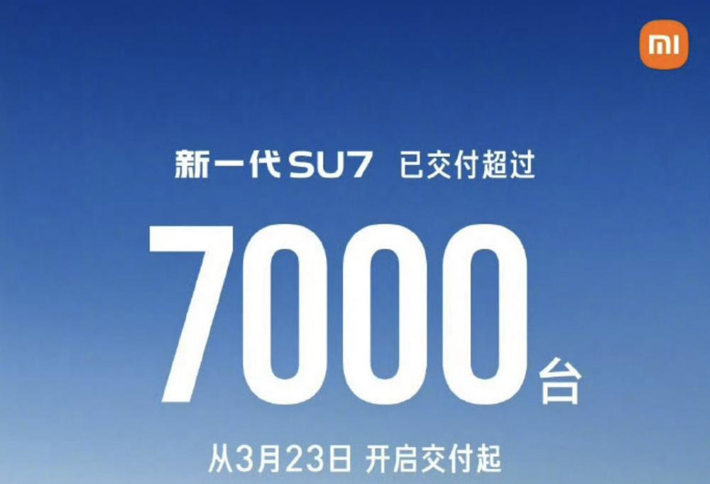 值得注意的是,新一代SU7于3月19日正式发布、3月23日开启交付,交付首周即实现交付超7000台。