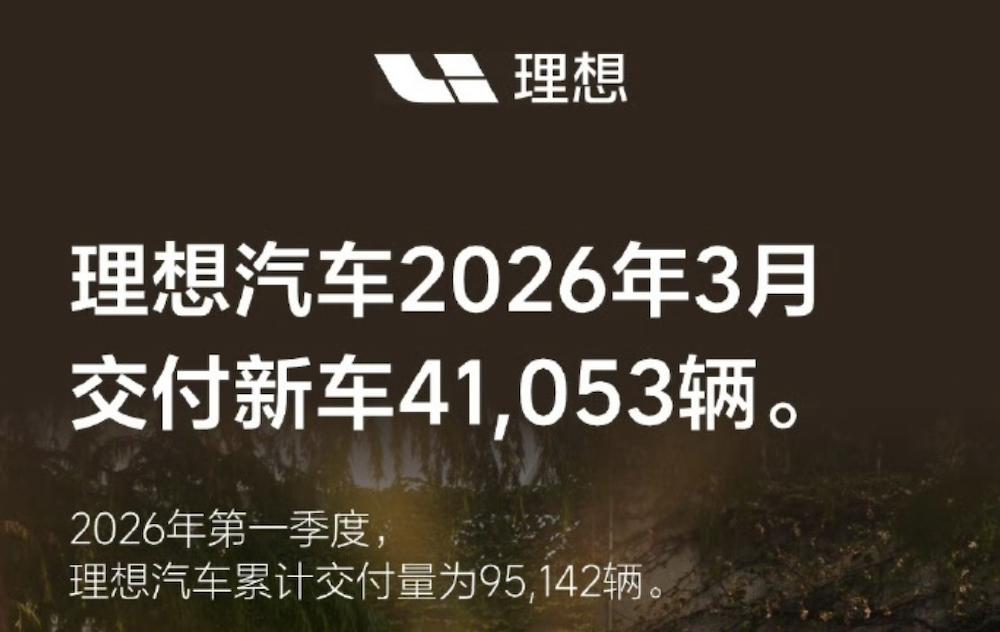 ▲理想汽车2026年3月交付量