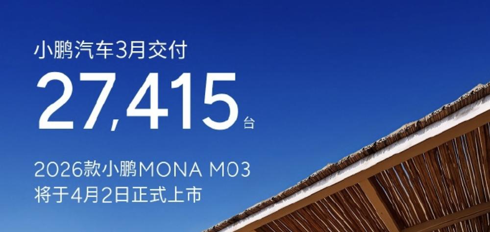 小鹏汽车2026年3月共交付2.74万辆,同比下滑17%,环比增长80%,3月销量环比增长,或与一车双能车型销量与市场需求提升有关。