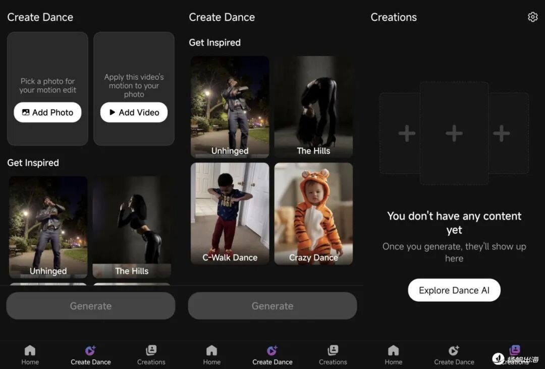从产品路径来看,Dance AI将已经在平台端被验证的内容形式,进一步封装为标准化、可批量使用的应用能力。更具体来说,它所代表的,是从“AI内容主导”的产品路径:用户重点关心生成什么内容,以及是否符合当前的传播趋势。