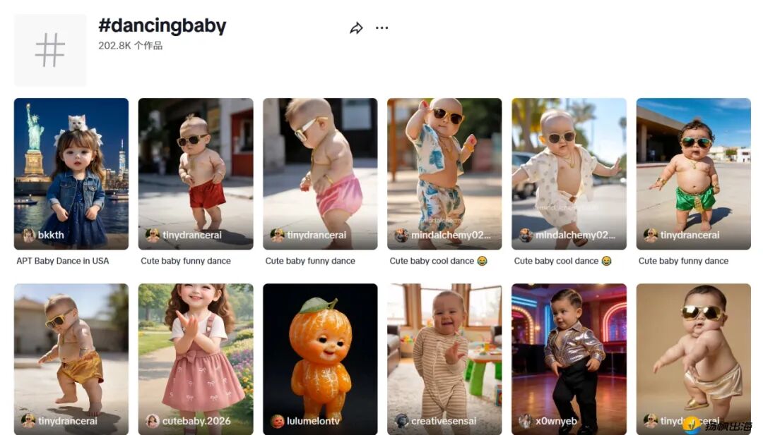 目前,在平台话题#dancing baby之下的相关视频,也达到了20.2万个。距离截稿24小时内,仍有多条点赞过千的新作品,也意味着这类内容热潮还在持续中。