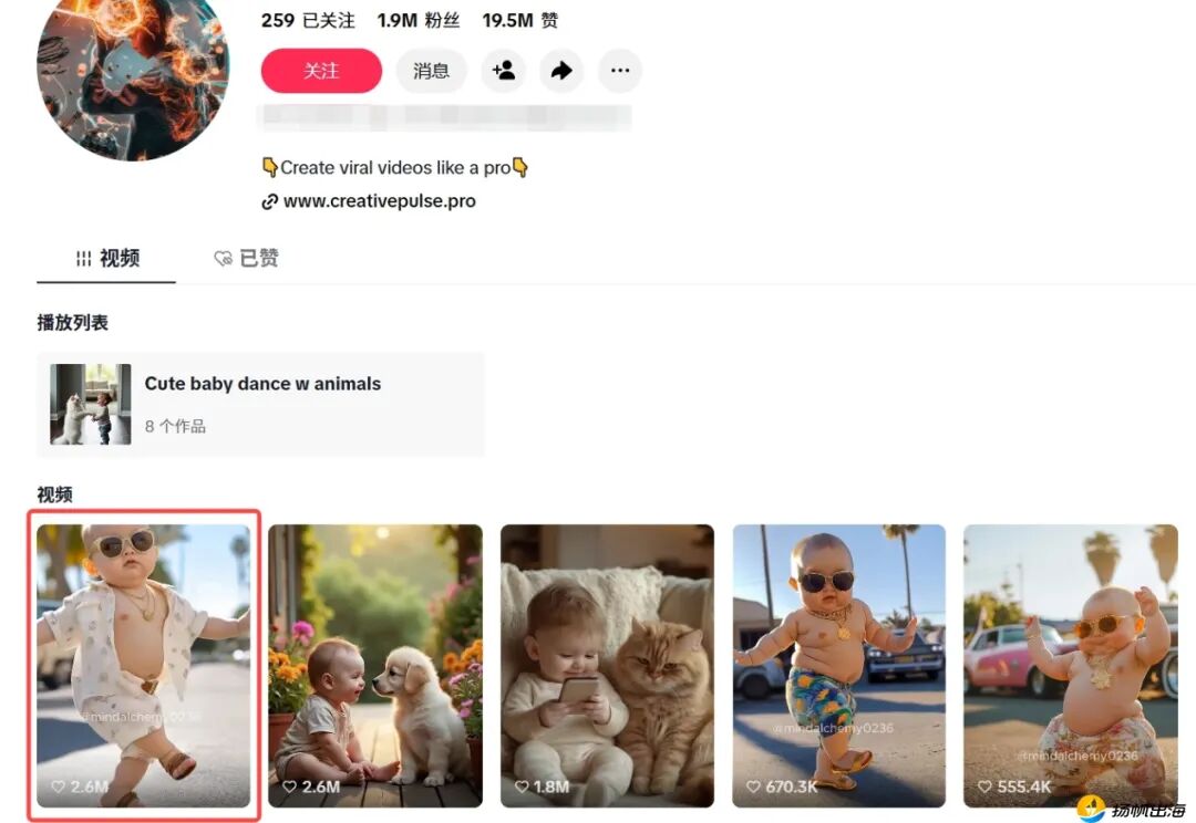 AI萌娃视频博主发布的AI萌娃跳舞视频,点赞量260万。图源:TikTok