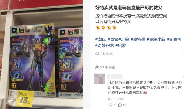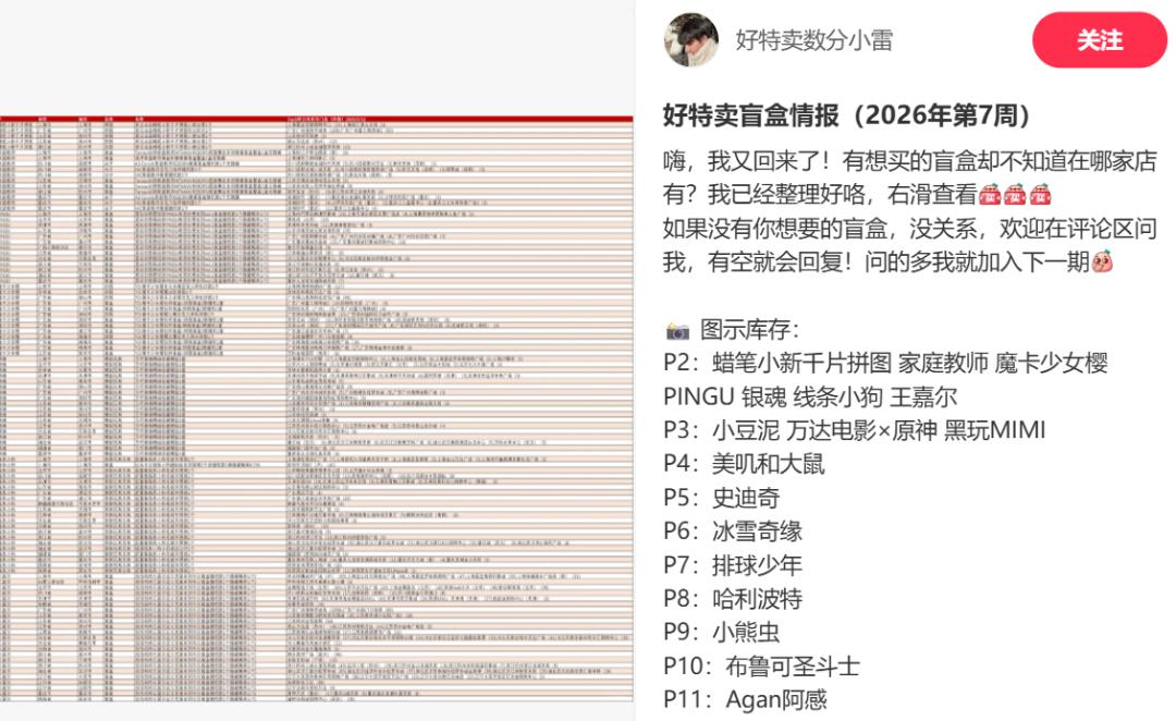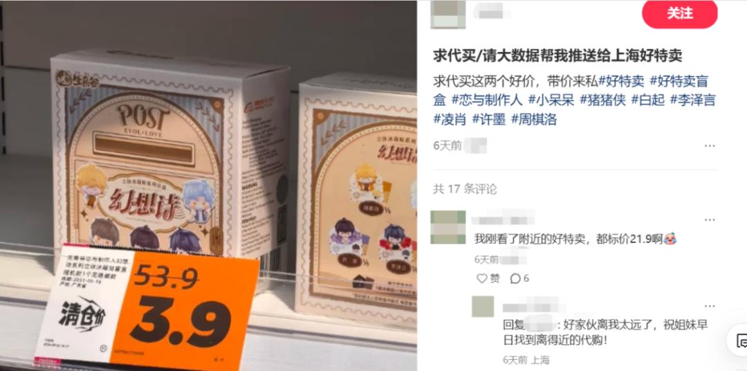 不过,由于各门店的进货、标价都差异极大,在社交平台上甚至衍生出了专门整理“好特卖潮玩捡漏信息”的账号和代购帖。