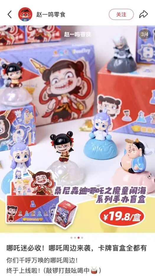 2025年初,《哪吒2》爆火,各大周边渠道全面断货。而万辰集团与代工厂桑尼森迪合作推出哪吒食玩盲盒,人们发现全国各地的好想来不仅货量充足,还打出了8.8元的独家最低价——同期赵一鸣的同款产品售价为19.8元。这一仗也成了代工厂桑尼森迪后续寻求资本化运作的成名之战。