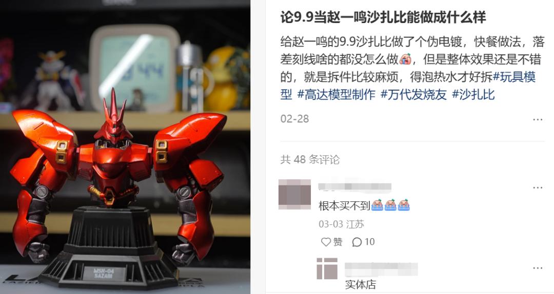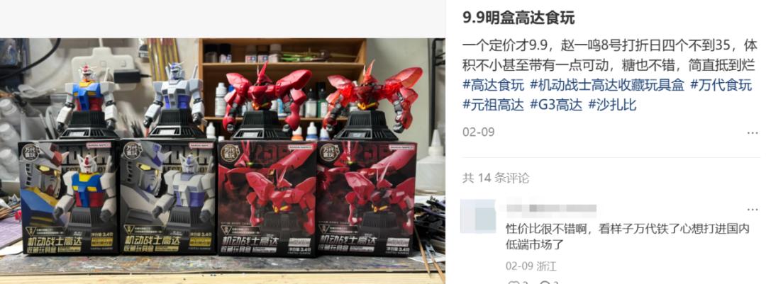 上个月,赵一鸣端出了由日本万代授权的高达胸像明盒,售价同样为9.9元:此前,万代食玩部的小型成品模型国内售价多在40-80元,而特殊配色和彩色透明材质更是“基地限定”的代名词,拼装部模型的市价都在300元以上。不少人为此第一次开始搜索附近的赵一鸣门店:“9.9挺大一只还带点可动,造型也正,买半只回来练手改造已经够划算了,它还送我一颗糖。”