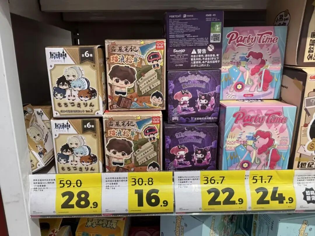 这些量贩零食店曾是食玩的主要根据地,甚至可以说,国内食玩市场的繁荣,以及桑尼森迪等企业冲击IPO的野心,也正是伴随着这些量贩渠道从一线城市到县城建立起分销网络才正式成型的。(砸5000万授权费卖8.8元盲盒,桑尼森迪的上市故事能落地吗?)