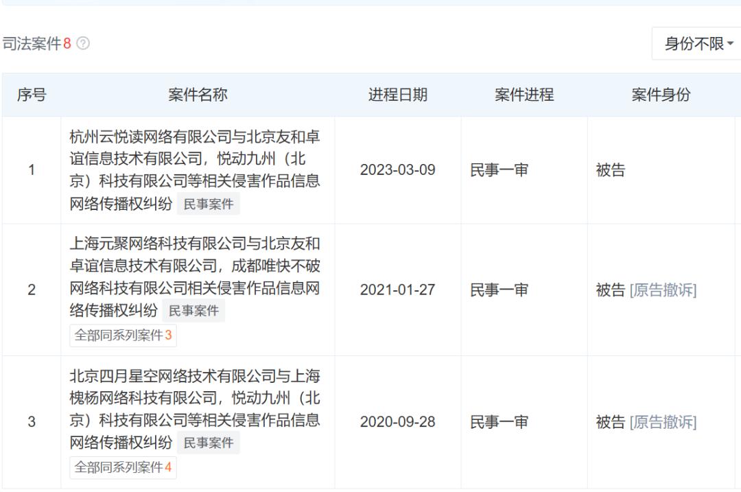 值得注意的是,司法信息显示,成都唯快不破网络科技有限公司多次成为“侵害作品信息网络传播权纠纷”相关案件的被告。