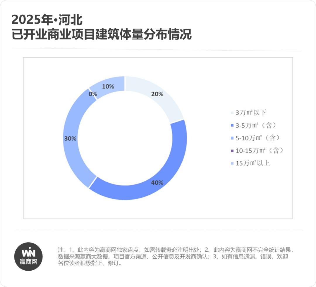 2025年河北新开商业项目中,10万㎡以下的中小型项目占比超过90%,成为地市与县域市场的绝对主力。这一体量区间兼具风险可控、运营高效的特点,能够精准服务周边3-5公里范围内的核心客群,以“小而美”的姿态融入城市肌理,实现商业与社区的深度共生。