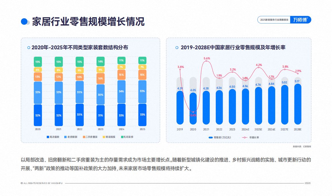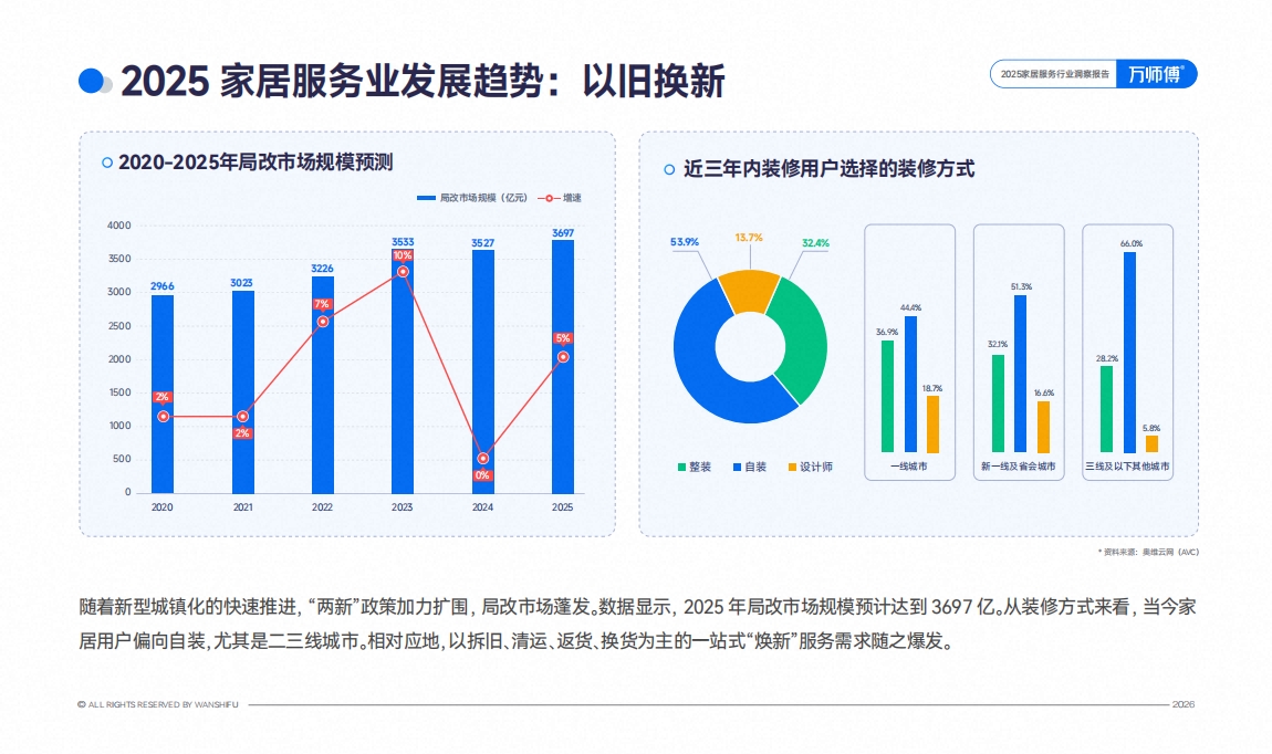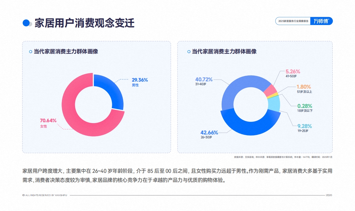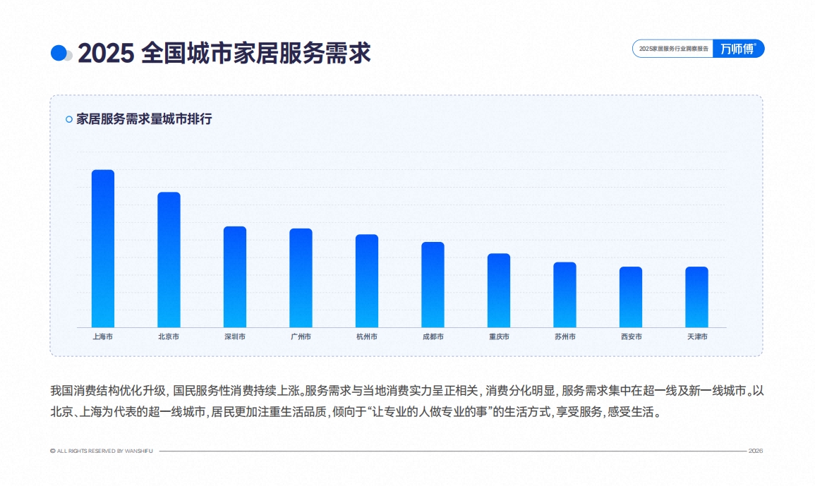 基于定期市场调研和独家数据分析,万师傅《2025家居服务行业洞察报告》深度剖析当前经济形势下中国家居服务行业消费特点、服务需求和产业环境,探索家居消费趋势,为企业寻找确定性增长提供参考。