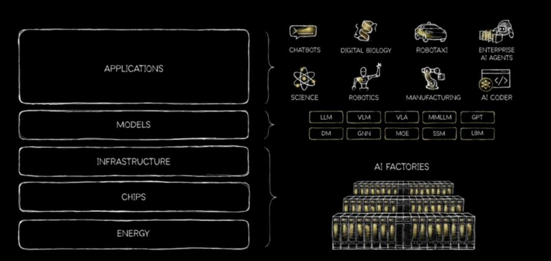 这让我想起了最近,老黄在个人博客发表的一篇长文《AI is a Five Layer Cake》。