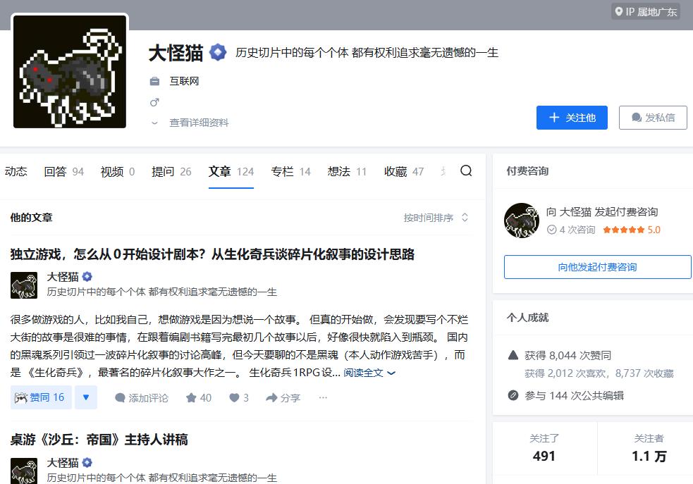 大怪喵喜欢和人讨论游戏设计