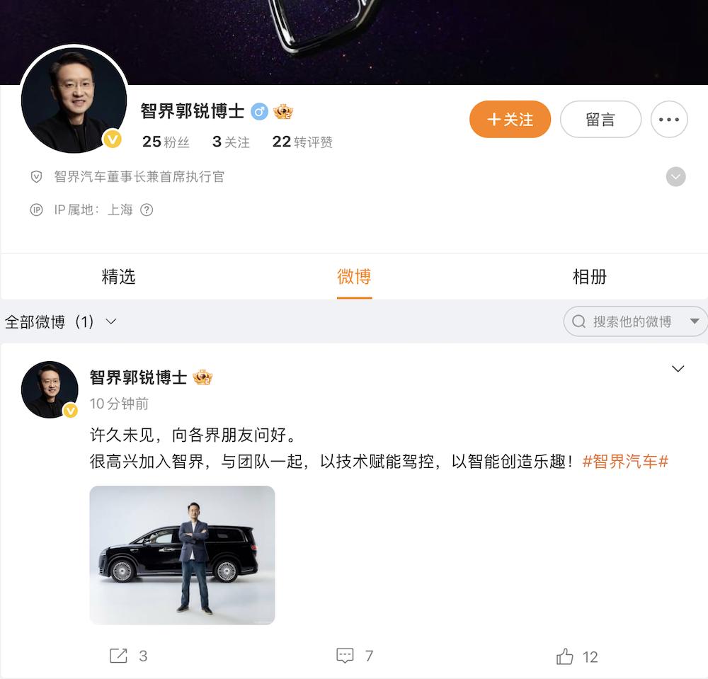 ▲郭锐出任智界董事长兼CEO