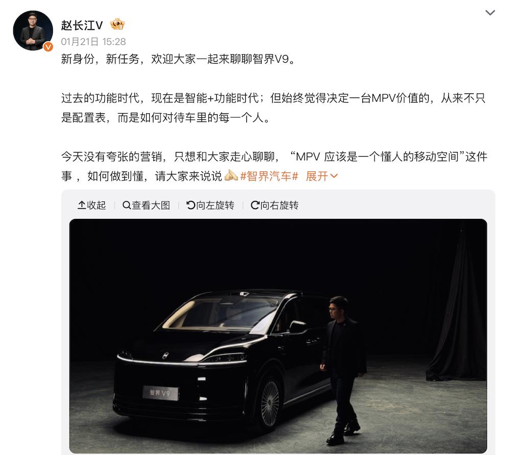 ▲赵长江发文剧透智界V9