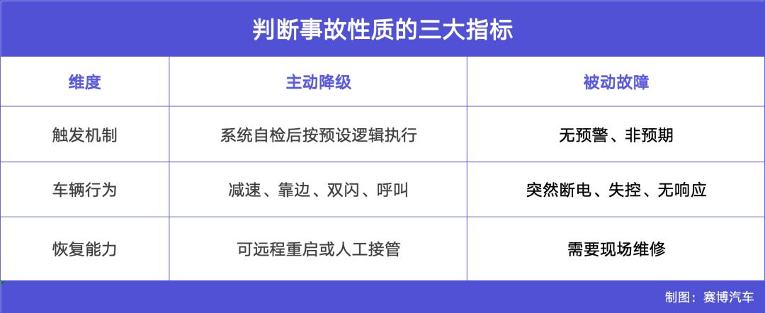 要判断是“主动降级”还是“被动故障”,关键看三个指标:触发机制、车辆行为和恢复能力。从武汉现场的反馈来看,涉事车辆均开启了双闪、在较短时间内完成了处置和恢复,且无人员受伤。这符合“主动降级”的行为特征。