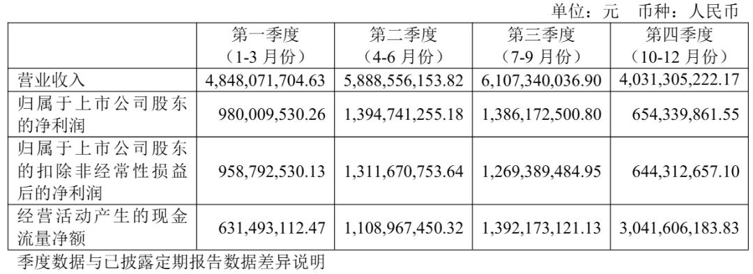 东鹏饮料2025年第四季度营收为40.31亿元,净利为6.54亿元,扣非后净利为6.44亿元。