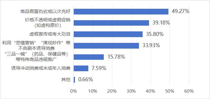 从营销手段分析,此类乱象往往以虚构剧本的手段进行。在消费层面,3·15期间,北京阳光消费大数据研究院公众号发布的调查数据显示,消费者认为当前直播电商最突出的问题中,“利用悲情营销、演戏炒作等不良剧本诱导消费”占比为33.93%。