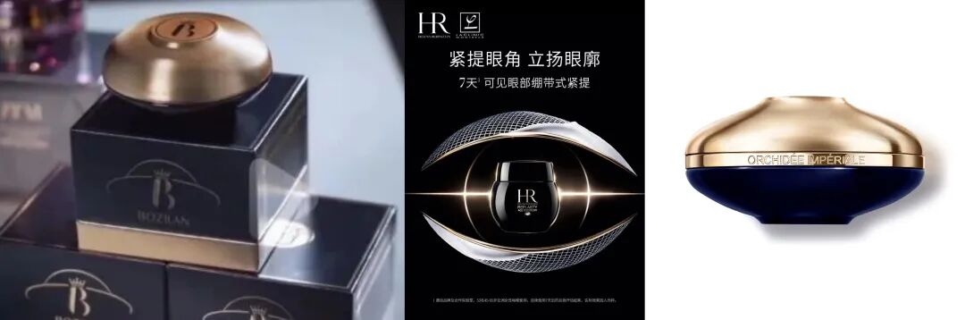 △截图自凤凰网时尚、淘宝赫莲娜官旗,从左往右依次为柏资兰产品、赫莲娜黑绷带、娇兰兰花修护面霜