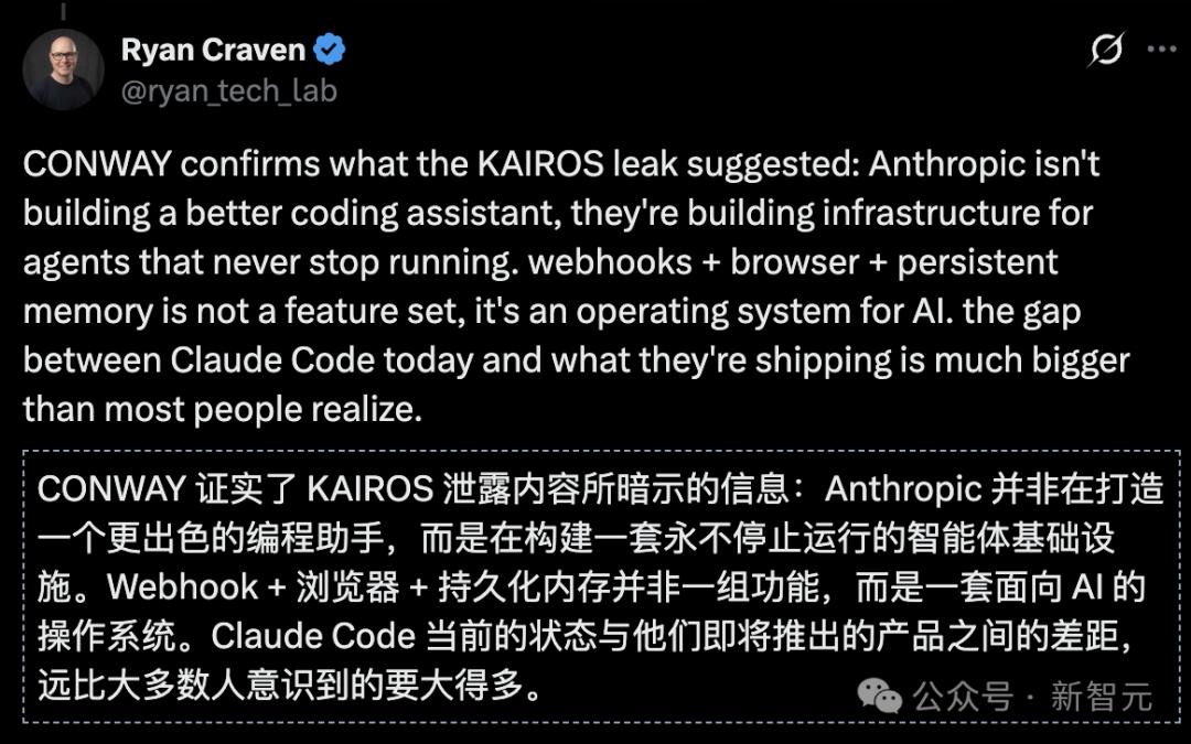 这份曝光的Anthropic内部测试信息量极大:Anthropic目标不止是打造更好的编程助手,不止打造Claude亲生龙虾KAIROS,终极目标是为AI打造一套全新的操作系统(OS for AI)。