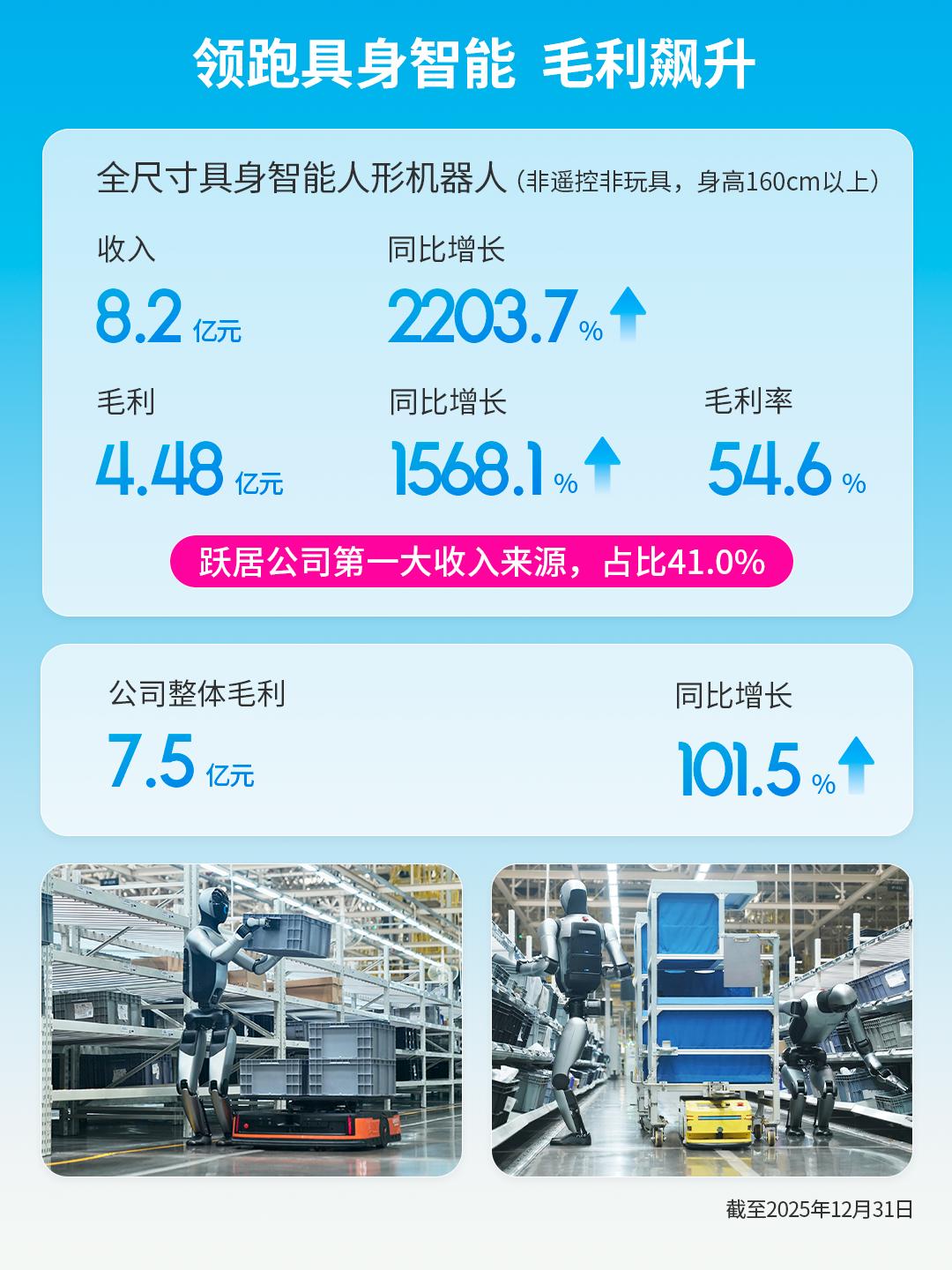 然而,规模的扩张并非故事的全部,这份财报的特别之处在于:公司全尺寸具身智能人形机器人业务迎来全面爆发。