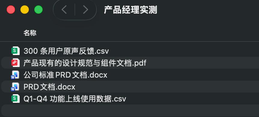 现在,我们准备了不同格式且与产品经理工作相关的五份文件: