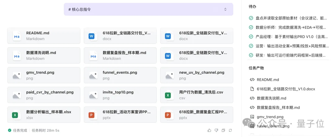 例如策划一个大促活动,前期要写方案、做宣讲 PPT、算预算;活动落地需要配置页面和物料;活动结束后还要熬夜洗数据、画图表、写复盘报告……