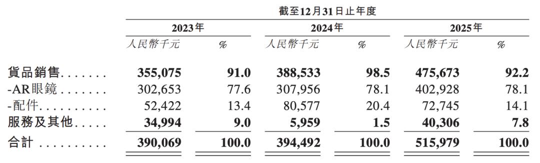首先,是收入结构的比较单一。XREAL作为一家卖智能眼镜的公司,它的业务确实“只卖智能眼镜”。