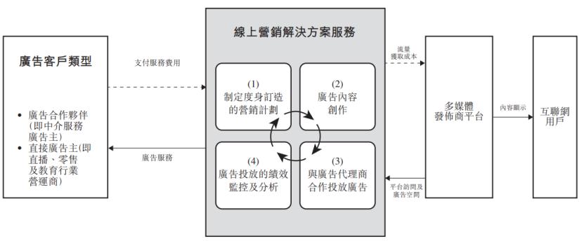 公司向广告客户提供线上营销解决方案服务,以优化其广告投放,并通过在各种媒体平台上进行广告及流量获取增加曝光率。